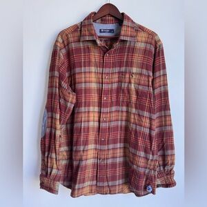 Cremieux Button Down Men Large Red Plaid Long Sleeve Reinforced Elbow luxury