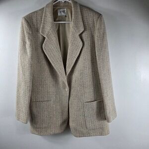 GIRAFFE Women's Size 14 Beige Tweed Wool Blazer Jacket Business Casual