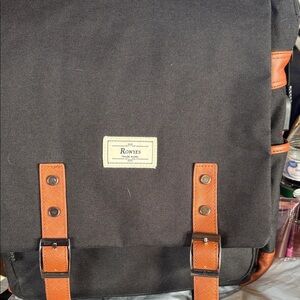 Discover the men's backpack in sleek black with stylish tan accents. Perfect for daily adventures.