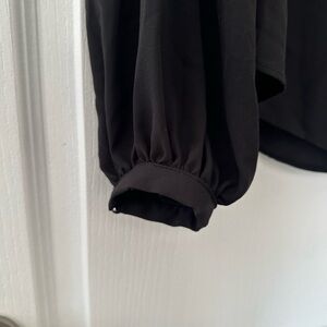 Chic black blouse with long sleeves and shoulder pads. Perfect for a stylish bold chic look.