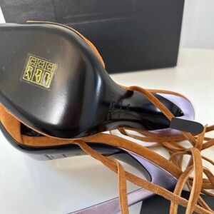 Saint Laurent Paz 105 Suede Brown with purple heel sandals