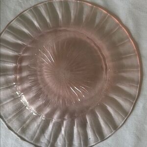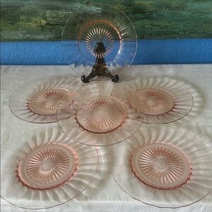 Elegant set of pink glass plates featuring a starburst design. Perfect for adding a touch of vintage charm to your table setting.