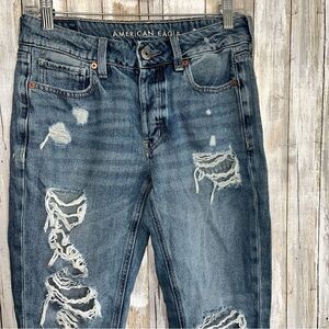 American Eagle Tomgirl High Rise Button Distressed Regular Wash Women’s 4