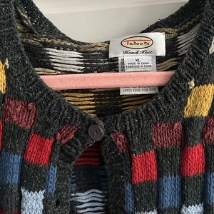Talbots Vintage Hand Knit Rainbow Checkered Cardigan Sweater