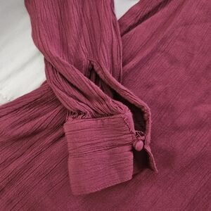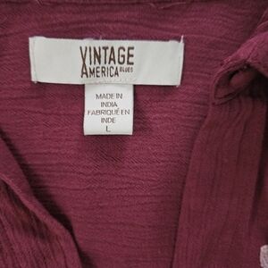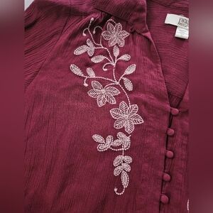 Elevate your wardrobe with this elegant burgundy top from Vintage America. Featuring intricate embroidery, it's perfect for any occasion. Beautiful long sleeve.