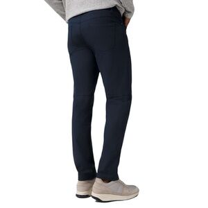 The Lululemon Warpstreme Slim Fit Pants in Size 31x26 are designed for men who value performance, comfort, and style. These black stretch pants feature a mid-rise waist with a flat front, straight leg design, and a 5-pocket design for added functionality. Made from a polyester and cotton blend knit fabric, these pants offer stretch for ease of movement during activities like golf or everyday casual wear. With a sleek button and zipper closure and subtle brand logo accents, these pants exude a sporty yet preppy vibe, making them suitable for all seasons.
