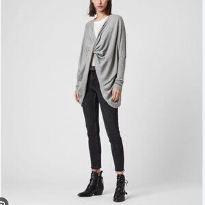 AllSaints | Itat Shrug Convertible Twist Sweater Cardigan Grey Cotton Size S