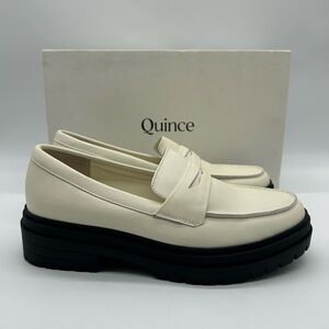 Quince Italian Leather Lug Sole Loafers Bone Ivory Platform Shoes Size 8.5 New with Box