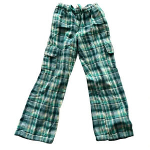 LL BEAN GIRLS GREEN BLUE PJS PAJAMA BOTTOMS PANTS FLANNEL WINTER PAJAMAS SIZE 10