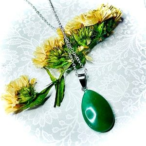 #New #Natural #Green #Chalcedony #925 #Sterling #Silver #Handmade #Water #Drop #Necklace