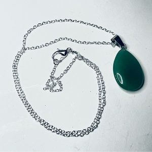 This necklace is handmade by me in 925 Sterling Silver. On a 18” stamped chain. The Green Chalcedony was minded in Globe, Arizona in Buffalo Hill. This pendant is water drop in shape.