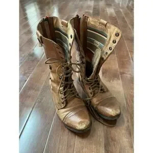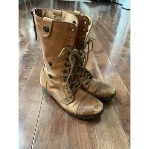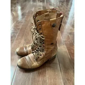 Steve Madden Camarro Ankle Boot Tan Leather Sz 7 Combat Boho Biker Victorian Y2K