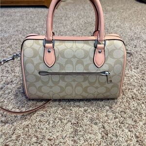 Coach Rowan Satchel Bag (Tan and Pink Signature Handbag)
