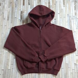 Excellent condition, Skims Cotton Fleece classic zip-up in maroon dark cherry color way. Super soft, easy to style, perfect for lounging, workouts, running errands, etc. Super cute and quality.