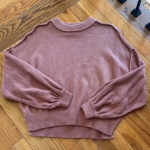 Cozy and stylish pink sweater perfect for any occasion. Soft fabric ensures comfort and warmth. Bought at my local boutique store! Worn one time. It’s so cute💕