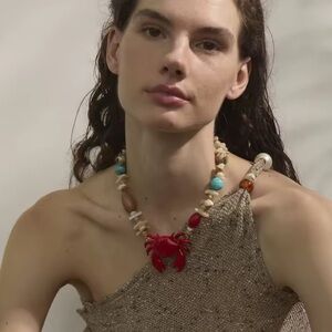 Red Crab Coastal Multicolor Beaded Gold Necklace