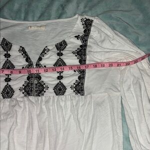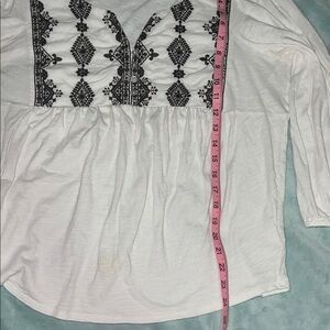 Bring on the boho vibes with this Embroidered Peasant Top featuring intricate embroidered details at the chest. Wear yours with jeans and boots to complete the look. Antique White, no stains or holes it’s soft material