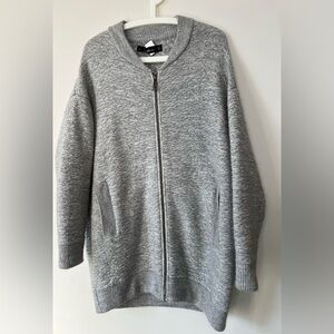 Zara oversized sweater. Has pockets and a wide heavy duty zipper. Good used condition. Tag says small, but fits more like a medium. Cozy & warm! Sweater is a lighter grey that what is showing in the photos.