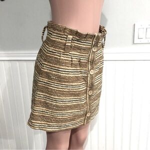 Zara NWOT Skirt Tweed Knitted High Pleated Waist with Rustic Buttons size Large