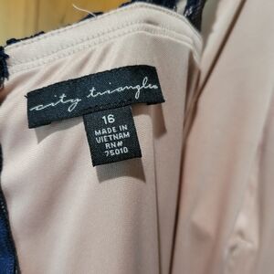 City Triangule Elegant Navy Lace Gown with Rhinestone Detail