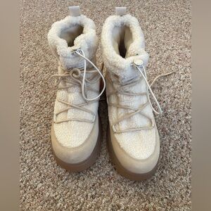 Never worn, but tags were cut off- as seen in pics! Warm shearling lining. Durable and waterproof. Ideal for cold weather! Happy to answer any n all questions ☺️🫶🏻