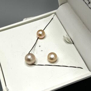 R.H. Macy & Co Sterling Silver Pearl Necklace & Stud Earring boxed Set
