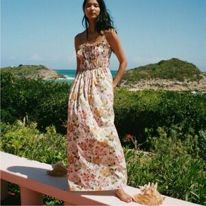 Our Coco Shop Shirred Maxi Dress in Multi Floral boasts a relaxed maxi silhouette with adjustable spaghetti straps, a square neckline with ruffles, and a shirred bodice. This casual dress is detailed with side pockets and an invisible side zipper. Inspired by Antiguan artisans, sewn in New York.