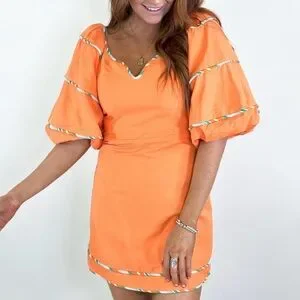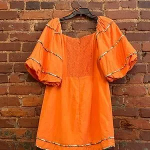 Karlie Sweetheart Orange Puff Sleeve Mini Dress NWT Size Large