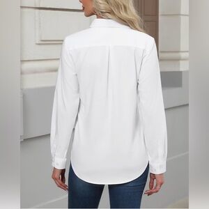 Elevate your wardrobe with this classic white button-up shirt. Perfect for any occasion, this top offers a timeless look and versatile style.