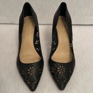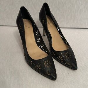 Kate Spade Ella Laser Cutout Black Heels size 8.5. Beautiful black leather punps with floral cut-out.