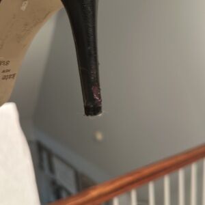 They do have signs of wear on the soles and a couple scuffs on the heel as pictured. Heel is 3.5"