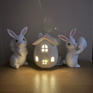 The House & Both Bunnies are Ceramic.