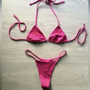 Dazzle in this vibrant fuchsia sequin bikini. Ideal for beach glamour. Size XS. Never worn.