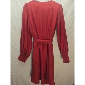 Express Wrap Dress Womens Size Sm Red Surplice Front Deep Vneck Bishop Sleeve