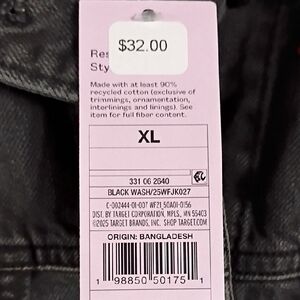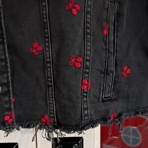 Wild Fable Black Jean Jacket with Red Floral Embroidery