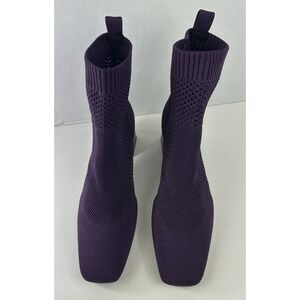 VIVAIA Melissa Perforated Knit Ankle Boots 41.5 US 10 Square Toe Eggplant Purple
