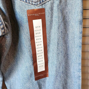Keywords: Sonoma men's jeans, size 32x32, 100% cotton jeans, light wash denim, straight-leg jeans, classic fit, casual wear, durable jeans, everyday style, breathable material.