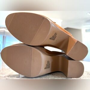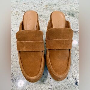 Splendid Vina Caramel Tan Suede Wood Look Block Heel Platform Mule Clogs SIZE- 8