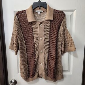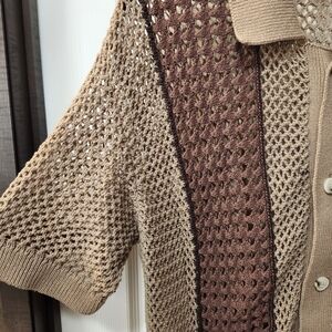 Mens Urban Outfitters Crochet Norwich Paneled Short Sleeve Polo Sweater. Sz L