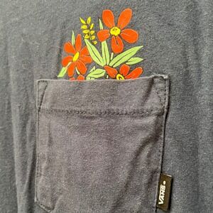 Vans Mens Large Navy Blue T Shirt Floral Pocket Skull Graphic Tee