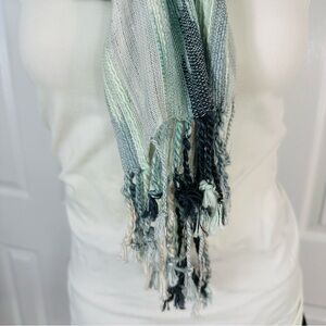 RISING TIDE scarf SHIMMERY ICY chic BEACHY flare fringe SEA FOAM GREEN peach cream dark blue grey