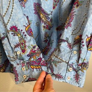 Talbots Casual Top Women Plus 2X Blue Swirly Paisley Button Up Shirt 100% Cotton. In great preworn condition. Approximately 26” from pit to pit and approximately 29” from shoulder to hem.
