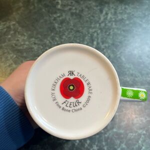 Roy Kirkham 2009 vibrant floral mug. Featuring a bold red flower on a lush green background.