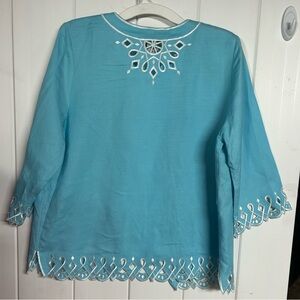Vintage Bob Mackie Turquoise Embroidered Blouse