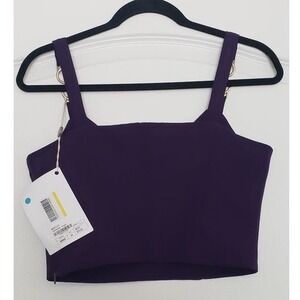 Brand new with tags, chic cropped top featuring ring accents on the shoulder straps. The sleek design of this top features a deep V neckline and a flattering silhouette. This top makes a statement with its bold purple hue and unique detailing, which adds a touch of sophistication. This versatile top is perfect for a night out, a cocktail party, or a stylish everyday look. Size Medium, measurements lying flat pit to pit 16.5" and length 15.5", Made in Italy, Retail $75