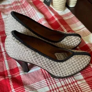 NWOT bernie mev. W Beige/blush & Black Woven Heels SZ 37 EU SZ 6 US