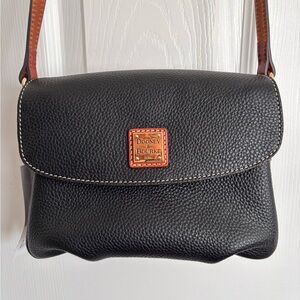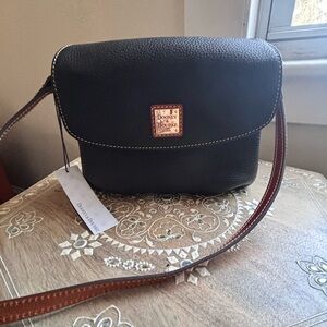 NWT Dooney & Bourke Black Mini Eliza Crossbody Bag with Brown Strap