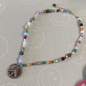 Vibrant necklace & bracelet set with multicolor beads. Includes peace charm. Perfect for layering. NEW !!!