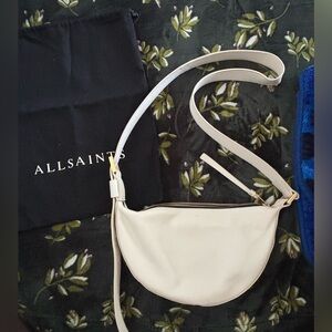 Chic All Saints half moon crossbody bag. Elegant off-white tone. Ideal for everyday use. No stains comes with dust bag