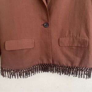 CAMI NYC Chitra Jacket In Coconut Macrame Fringe Hem Linen Blend Size Small